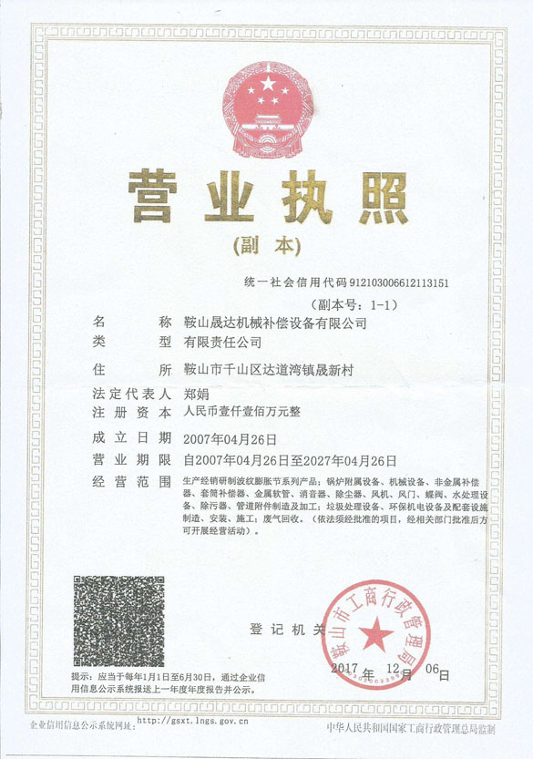 鞍山晟達機械補償設備有限公司成立于2007年4月,是生產、經銷、研制波紋膨脹節系列產品,非金屬補償器,套筒補償器,橡膠接頭,電動擋板閥,卸灰閥,蝶閥,消音器,刮板機,除塵設備等環保類設備的專業生產廠家。